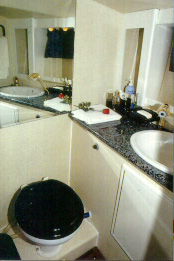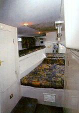 Four spacious, air conditioned cabins, each with the capacity to offer a further single berth, provide for comfortable accomodation and an enjoyable journey. Separate crew quarters fore with own entrance & private facilities. |