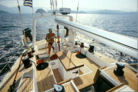 Our rigging and deck equipment is of top quality; the mast and sails are tailor made by HOOD, all with furling, and the deck is equipped with top of the range LEWMAR accessories. |